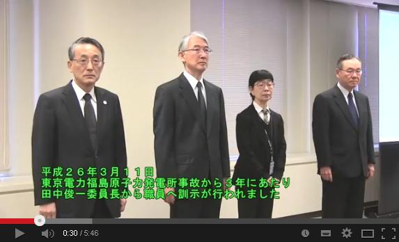 東京電力・福島原子力発電所事故から3年にあたり田中俊一委員長訓示