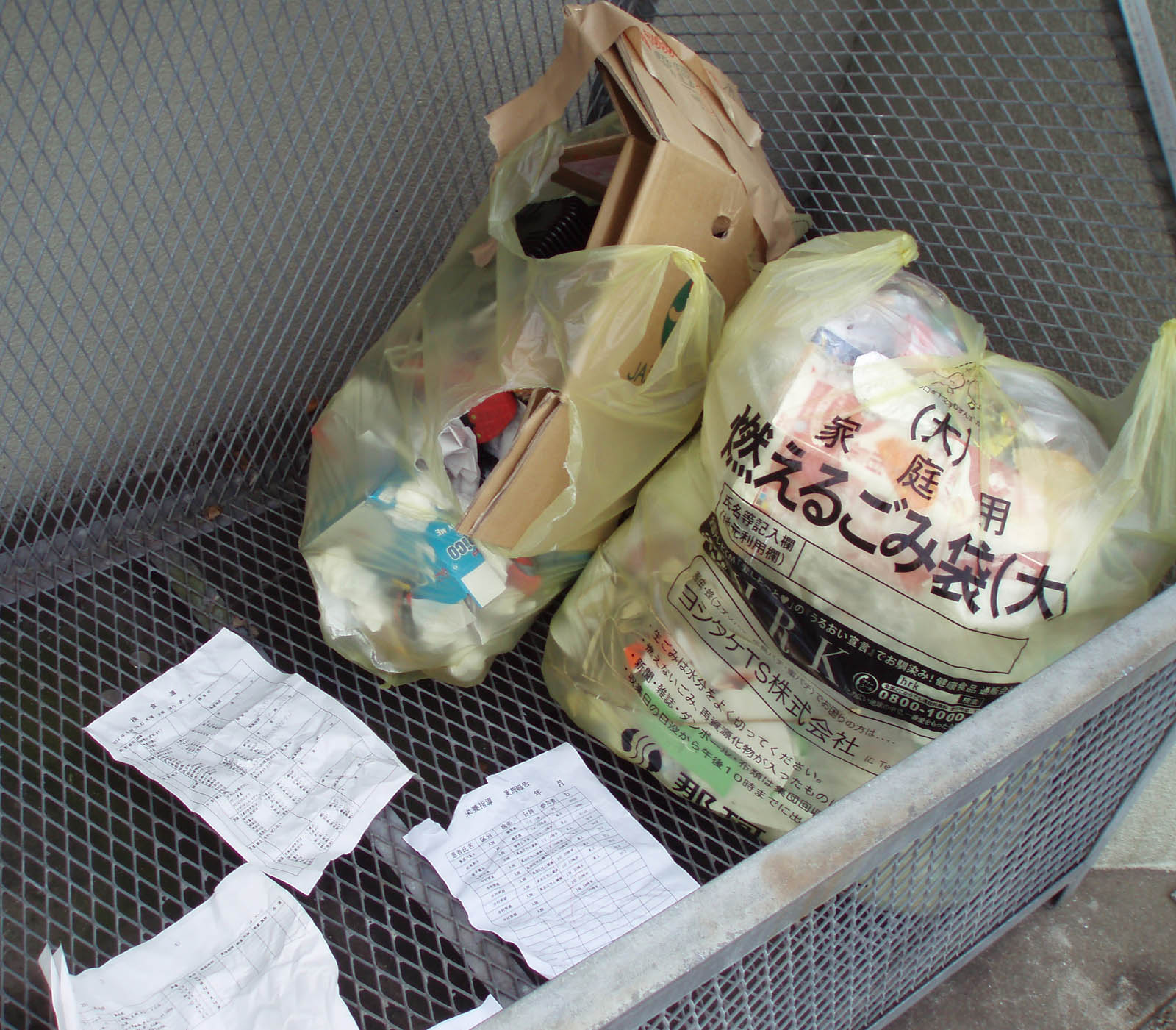一般住居に毎日、時間指定外不法投棄例:友田病院事業ゴミ