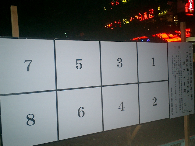 (選挙戦が公示されると候補者のポスターが届け出順で貼り付けられる)